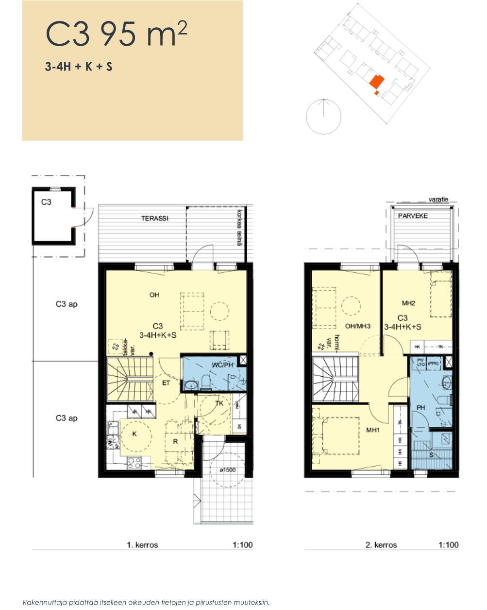 Kodikkaassa ja yhteisöllisessä Puu-Myllypuron kaupunkikylässä tarjolla ihastuttava rivitalokoti. Asunnolla ja taloyhtiöllä on kokonaan oma tontti, joka takaa edulliset asumiskulut. Asunnon valoisat ikkunat, parvekkeet sekä olohuone tekee tilasta avaran ja valoisan. Kylpyhuone ja ikkunallinen sekä tilava sauna kutsuvat rentoutumaan. Kodin kaksi - kolme makuuhuonetta ja asunnon toinen kylpyhuone/wc muodostavat hyvän, tilavan kokonaisuuden. Ison makuuhuoneen yhteydessä on viihtyisä parveke vehreälle pihalle päin. Huoneistossa on vesikiertoinen lattialämmitys sekä huoneistokohtainen koneellinen ilmanvaihto. Alueen kodikas tunnelma syntyy puisista pientaloista, kaupunkimaisista, viihtyisistä katutiloista ja yhteisöllisyyteen houkuttelevista ratkaisuista. Rauhallinen alue sopii erinomaisesti lapsiperheille. Taloyhtiö sijaitsee omassa rauhassa upealla paikalla. Naapurustosta löytyvät päiväkodit, koulut, kaupat ja palvelut. Liikuntahalleja, metsäteitä ja kevyenliikenteen väyliä on moneen suuntaan. Hallainvuoren ulkoilualueen ja Vanhankaupunginlahden luontopolut kutsuvat nekin viihtymään. Hyvät liikenneyhteydet mm. Raide-Jokeri on valmis ja palvelee Myllykylän aluetta nopeilla raideyhteyksillä Helsingin ja Espoon välillä. Asuntoon kuuluu kaksi autopaikkaa. Velaton taloyhtiö! Yhtiö ilman yhtiölainoja ja rahoitusvastikkeita. As. Oy Hgin Valssimyllynkatu 19 - niminen yhtiö muodostuu 16 rivi- ja paritalorakennuksesta. Taloyhtiön oma tontti takaa edulliset asumiskustannukset nyt ja tulevaisuudessa! Suurelta terassilta ja yläkerran parvekkeelta aukeavat valoisat luontonäkymät.