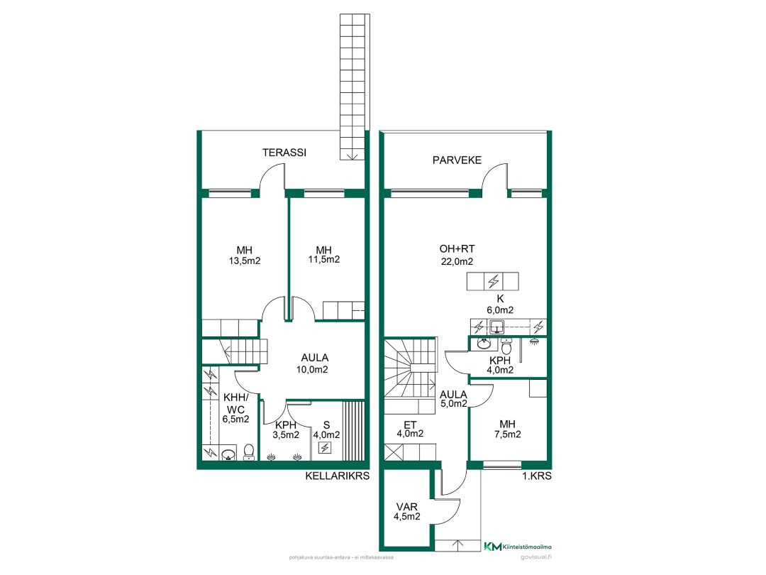 Asunnoissa on energiatehokas maalämpö ja kesällä viilennyksestä huolehtii ilmalämpöpumput.