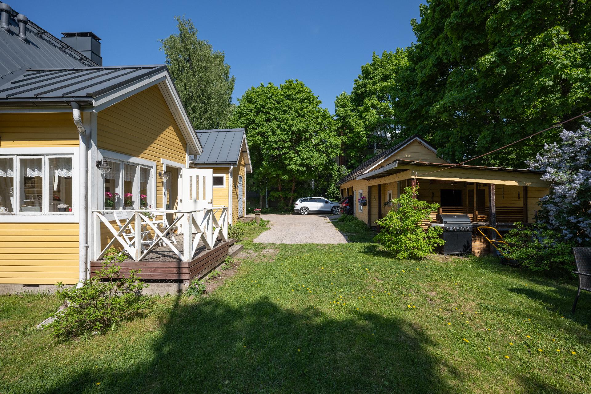 Suojaisan puutarhapihan sisältä löytyy ihastuttava 1920-luvulta peräisin oleva omakotitalo. Pihapiiri on suojaisa josta löytyy erilaisia perinnekukkia ja pensaita runsaasti. Pihapiiri on mitä oivallisin paikka viettää kesäjuhlia. Taloa on remontoitu runsaasti viimeisten vuosien aikana. Sisätiloja on uusittu vuodesta 2005 lähtien hyvin runsaasti. Taloon on tehty hyvin paljon isoja remontteja vuosien varrella, mm. seuraavat: * 2014 vesikatteen uusiminen * 2014 käyttövesiputket uusittu * 2014 viemärit uusittu sisällä * 2014 tuuletusputket viety katolle * 2014 piippuja uusittu * 2018 yläkerran Wc * 2020 tonttivesijohddon uusiminen * 2020 ulkoverhouksen uusiminen * 2022 Lämmitysmuodon muutos ilmavesilämpöpumppuun * 2022-2023 saunan pinnat uusittu, khh:n, saunan ja pesuhuoneen lattiat uusittu (vesieristeet, kaadot, laatat) * 2024 Valokuitu Kaikki tarvittavat asuintilat löytyy alakerrasta ja jos sinulla on tarvetta useammille makuuhuoneille niitä löytyy yläkerrasta lisää. Asunnon sisustus on ajatonta ja arvokasta hirsipintaa on tuotu mukavasti esiin. Kaikki alueen koulut sijaitsee lyhyen kävelymatkan päässä. Rajamäen Uimahalli, kirjasto, terveysasema, ruokakaupat, kahvilat ja pizzeriat löytyy kaikki kilonmetrin säteeltä. Sijainti ei voisi siis olla kätevämpi. Tiesitkä että tässä talossa on toiminut vuosikymmeniä sitten salakapakka, joten talolla on alueen lähitienoolle myös historiallinen merkitys. Tervetuloa tutustumaan!